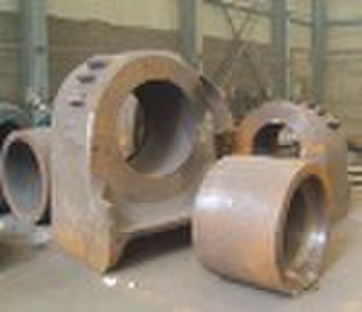 large steel casting 1-50MT large cast steel parts with furan resin sand moulding process TAA foundry is located in Zibo city in China. We could manufacture large scale steel and iron casting with single piece weight 1MT – 50MT. Here’s some details about our foundry plant. 1. Process: sand casting – furan resin sand molding 2. Weight of single casting: 1MT – 50 MT 3. Material: various steel and iron 4. Standards: ASTM, DIN, JIS, BS, GB 5. Certificates: ISO9001:2008, ABS, CCS, LR, GL, DNV, BV 6. Inspection: Spectrometer, Nondestructive testing(UT, MT) 7. Product scope according to application: 1) Wind power system 2) Hydroelectric system 3) Mining industry 4) Shipbuilding industry – Marine rudder/shaft/ sternpost system, such as rudder blade, rudder pintle, hydraulic nut, sternpost, anchor chain wheel, slag pot, etc.